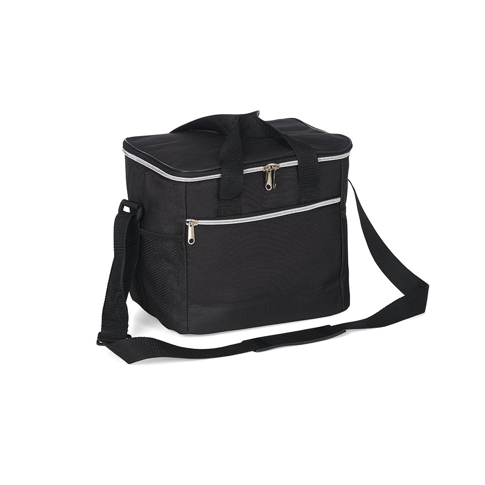 DescriçãoBolsa térmica 18 litros. Contém bolso frontal com zíper, bolsos laterais telados, alça de mão em nylon e alça transversal regulável (não removível) com apoio para ombro.
