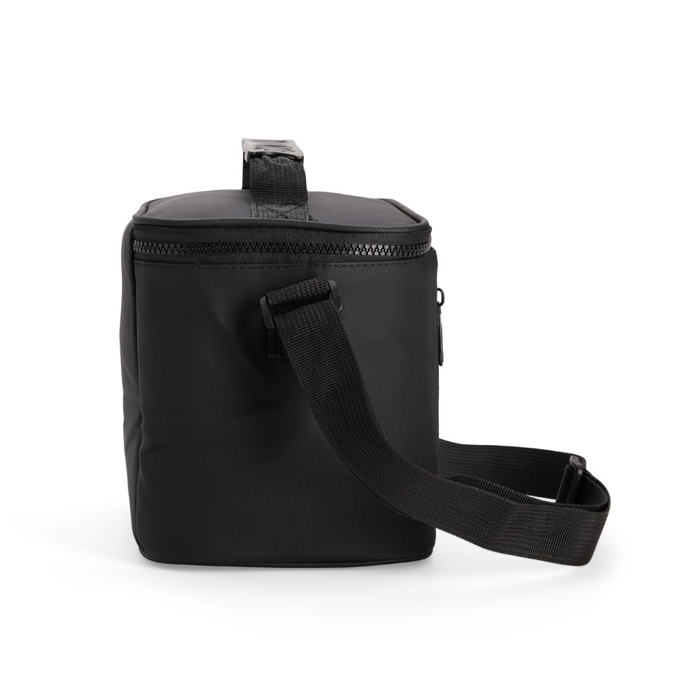Descrição: Bolsa térmica confeccionada em poliéster mesclado com PVC impermeável, fechamento por zíper e capacidade máxima de 6 litros. Possui revestimento térmico em PEVA atóxico, o que ajuda a conservar a temperatura de alimentos e bebidas por mais tempo. Conta também com bolso frontal, placa emborrachada para personalização, uma alça de mão e alça transversal.