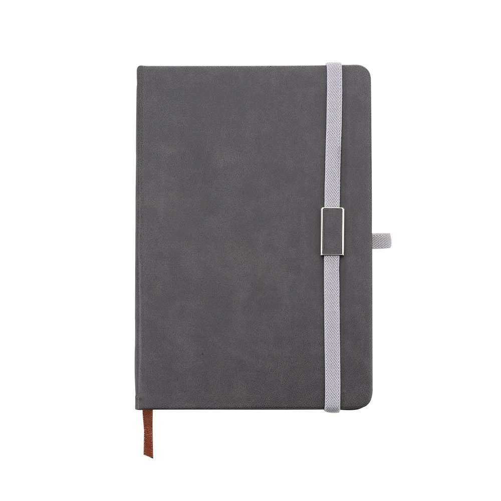 DescriçãoCaderneta emborrachada com suporte para caneta. Contém aproximadamente 96 folhas amarelas sem pauta, suporte de nylon para caneta (não acompanha), marcador de página em cetim e elástico para lacre com plaquinha de centro emborrachado.