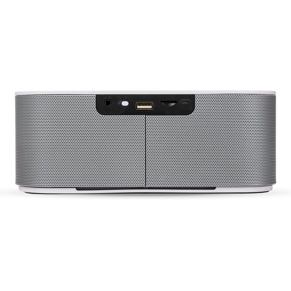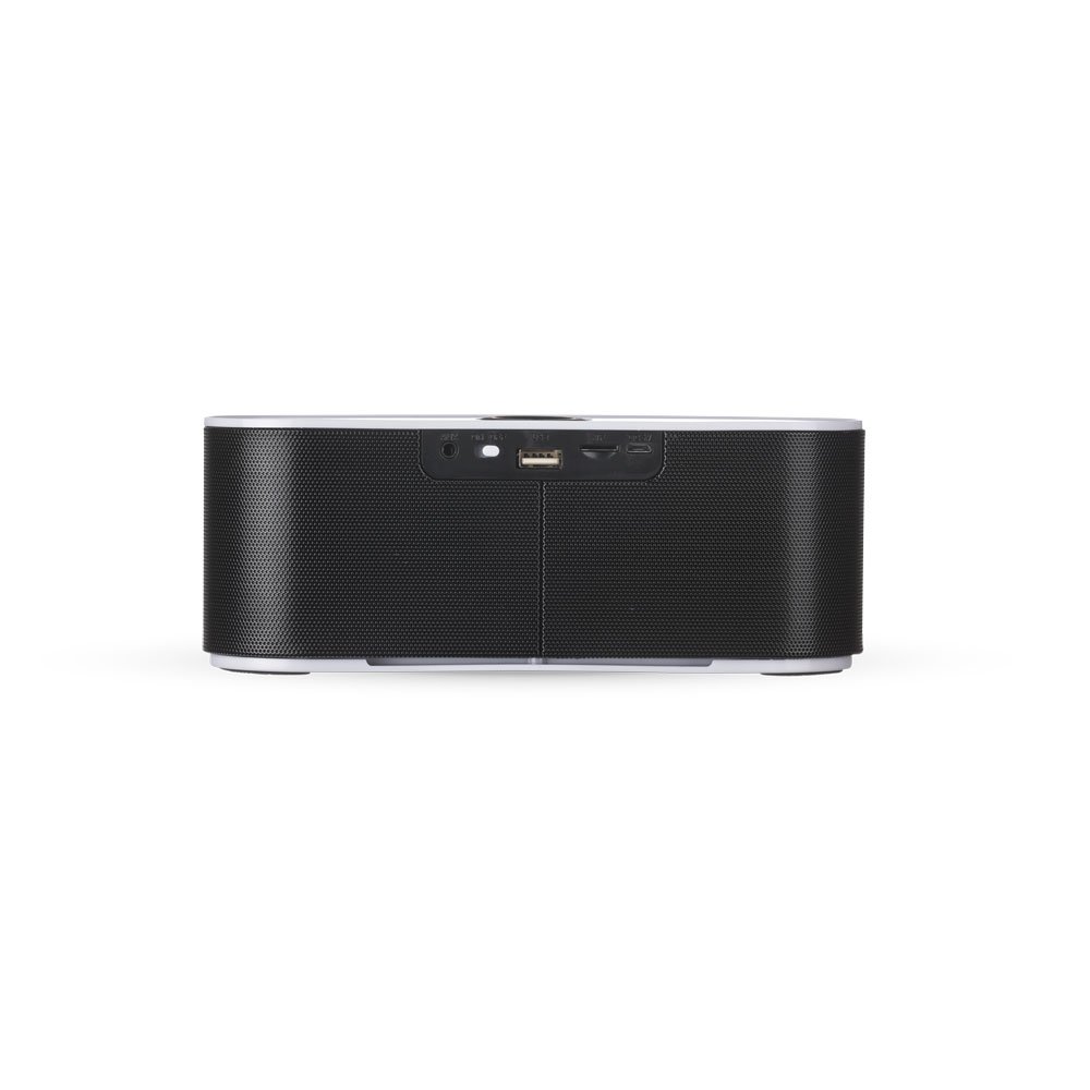 DescriçãoCaixa de Som Multimídia. Design fino e material plástico resistente, possui: botão On/Off no verso, botão >|| (MODE), botão < retroceder faixa ou diminuir volume, botão > avançar faixa ou aumentar volume, botão PLAY/PAUSE e atender chamadas, entrada P2/auxiliar(caixinha de som pode ser conectada no computador, basta segurar o botão central para alternar o modo), entrada microUSB, microfone, entrada microSD(cartão de memória) e entrada USB(leitura de pen drive), parte inferior possui borrachas anti deslizantes e auto-falantes laterais. Acompanha cabo USB.