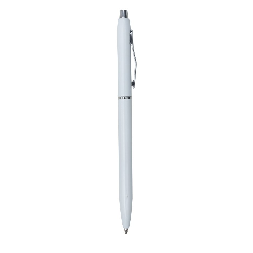DescriçãoCaneta metálica com carga esferográfica azul e acionamento por clique.