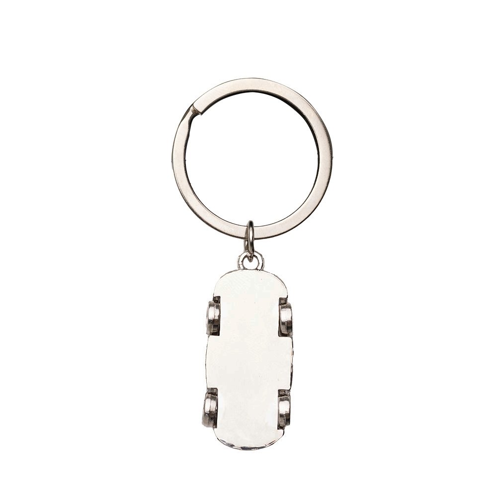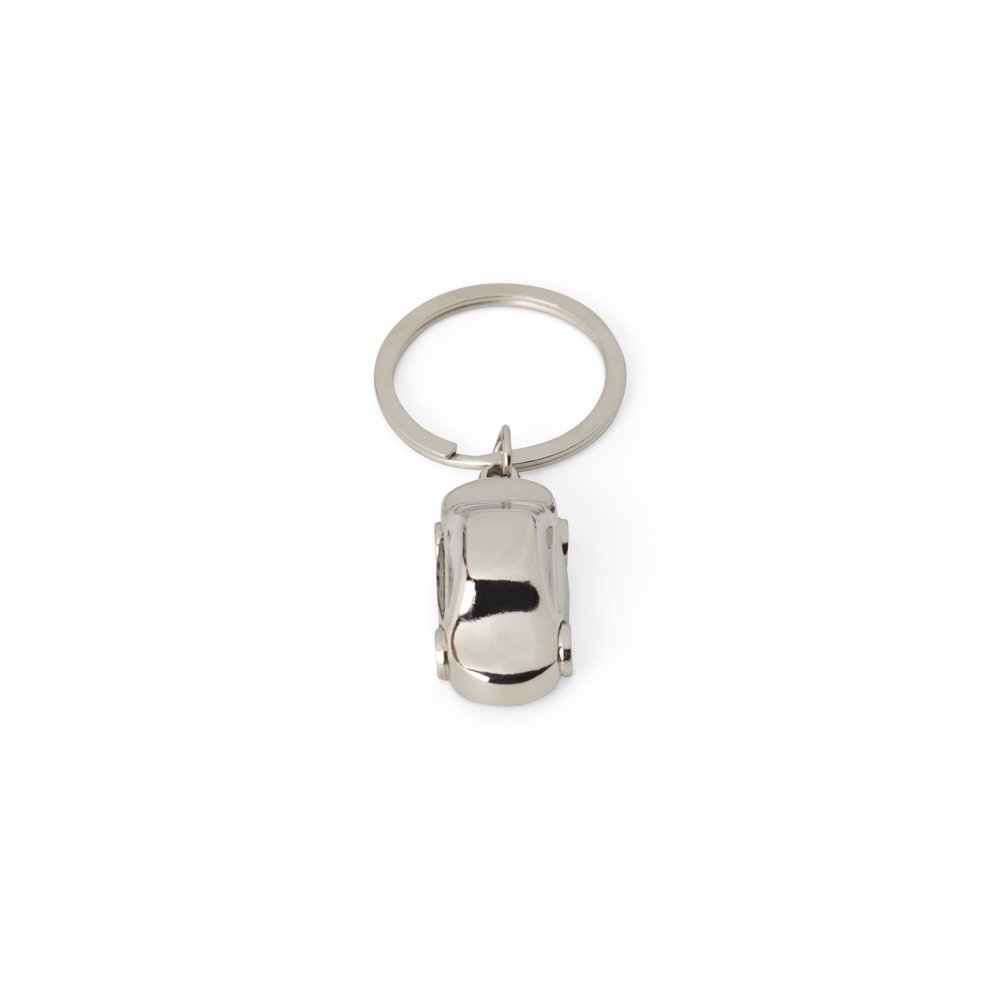 DescriçãoChaveiro de metal brilhante formato carro.