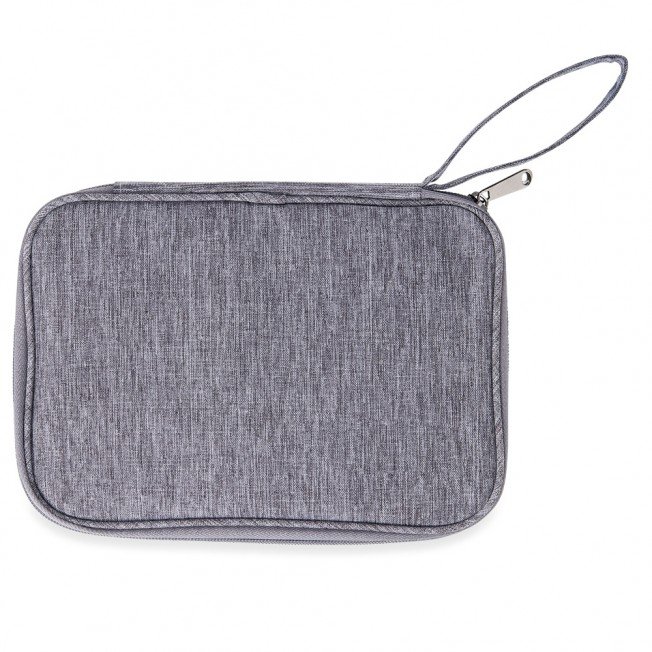 Descrição: Estojo para kit tecnológico a prova d’água de poliéster possui 5 compartimentos com elástico e uma pequena tela de proteção, 3 elásticos centralizados, um bolso de tela com zíper e uma alça de mão. OBS.: ACESSÓRIOS NÃO INCLUSOS, IMAGENS MERAMENTE ILUSTRATIVAS.